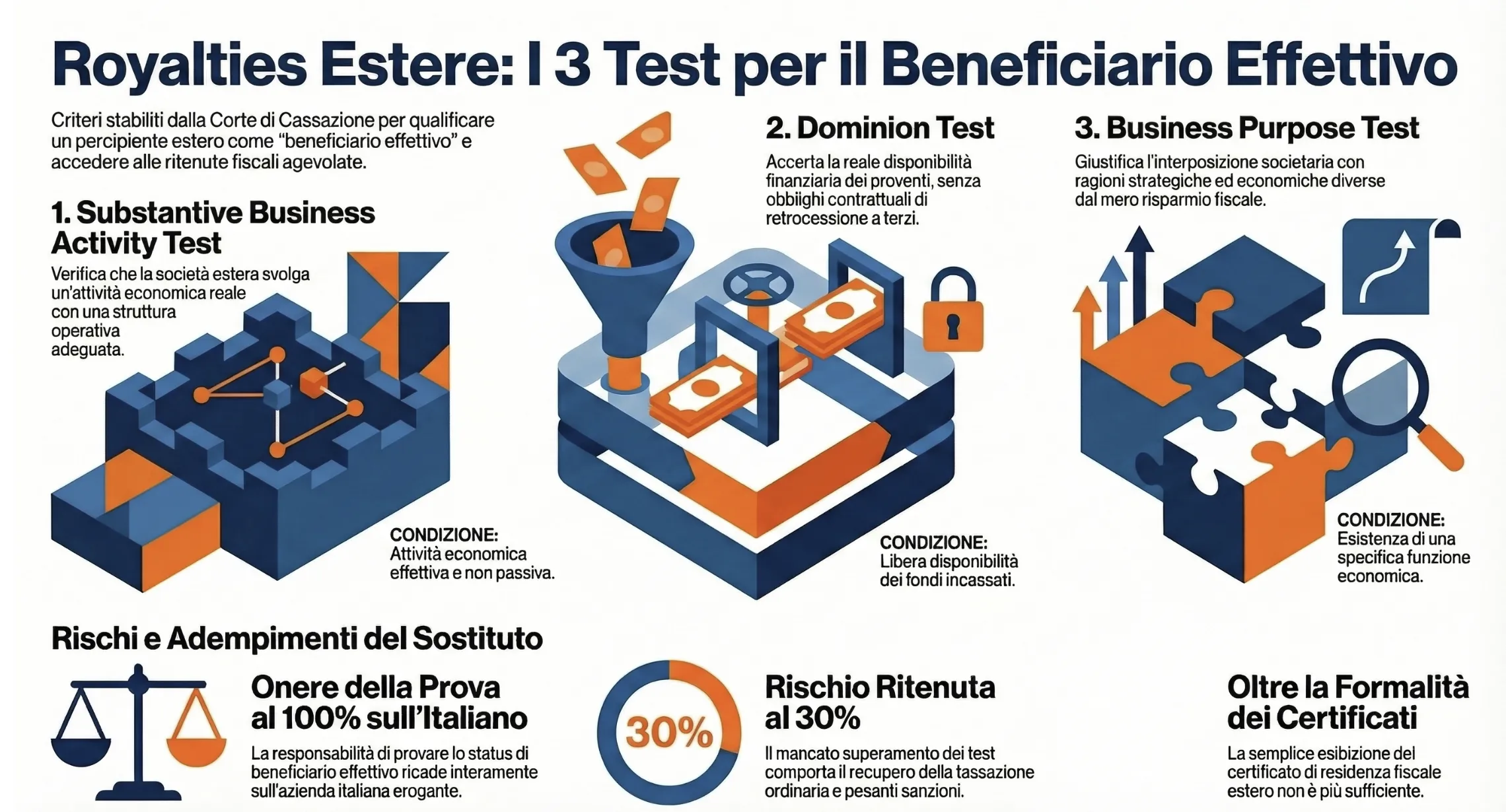 Beneficiario-effettivo-royalties-estere-3-test-Cassazione-ritenuta-agevolata-infografica