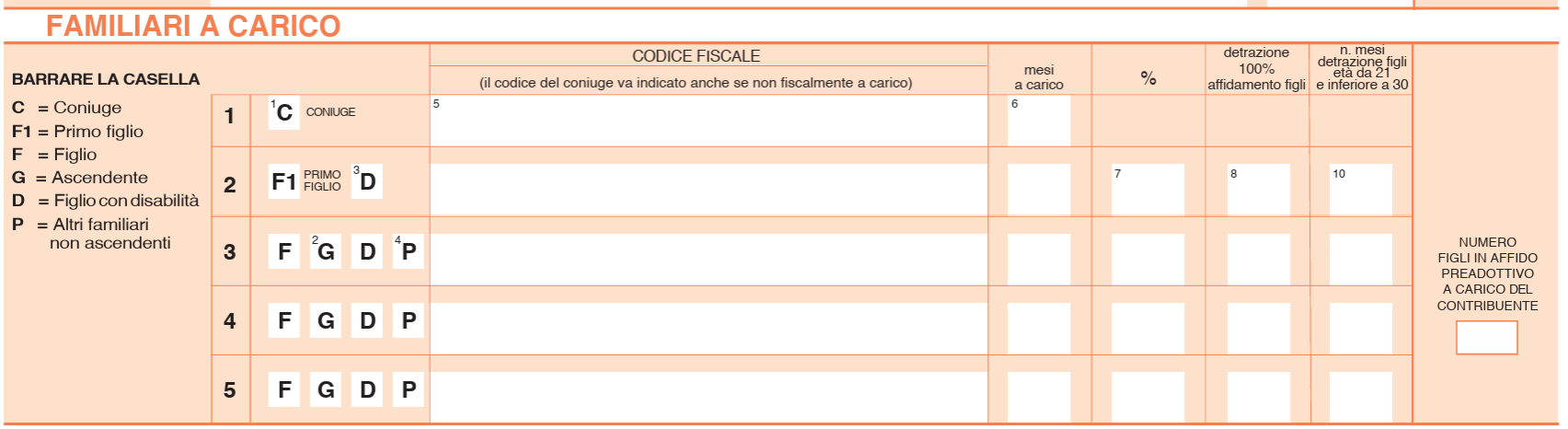 | Categoria familiare ex art. 433 c.c. | Stato detrazione IRPEF | Condizione obbligatoria |