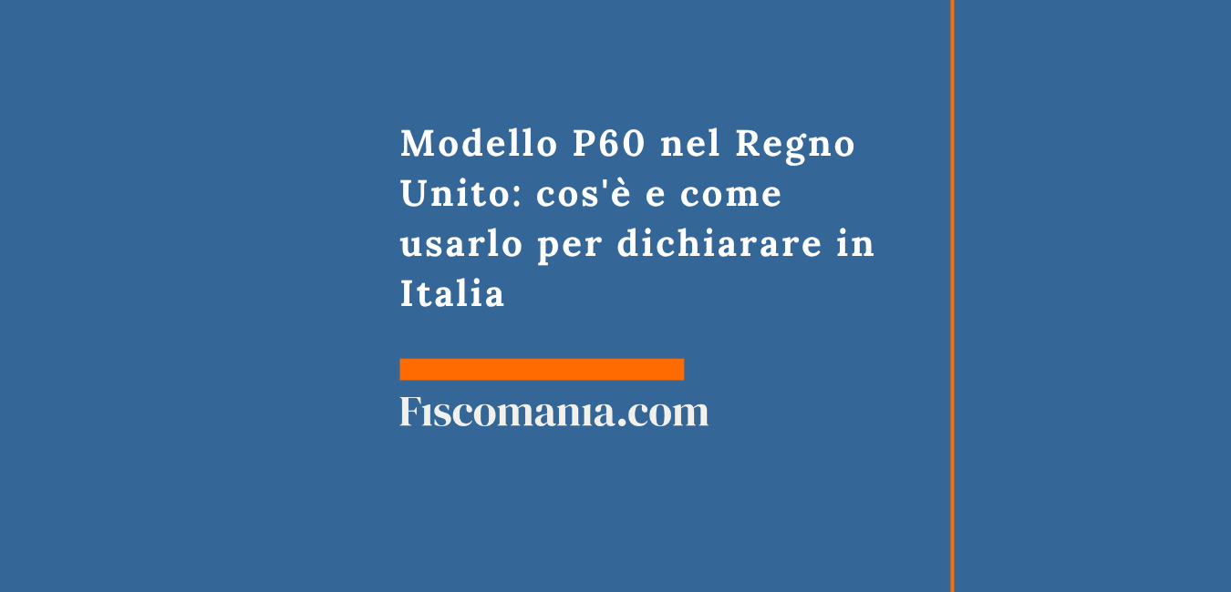 Il modello P60 è la certificazione annuale che ogni datore di lavoro britannico è obbligato a rilasciare ai propri dipendenti entro il 31 maggio, al termine dell’anno fiscale UK (6 aprile–5 aprile). Riepiloga retribuzioni, imposte trattenute tramite PAYE e contributi National Insurance. Per chi ha lavorato nel Regno Unito mantenendo la residenza fiscale in Italia, o per chi vi è rientrato, è il documento essenziale per la dichiarazione dei redditi italiana e per l’applicazione del credito per imposte estere.