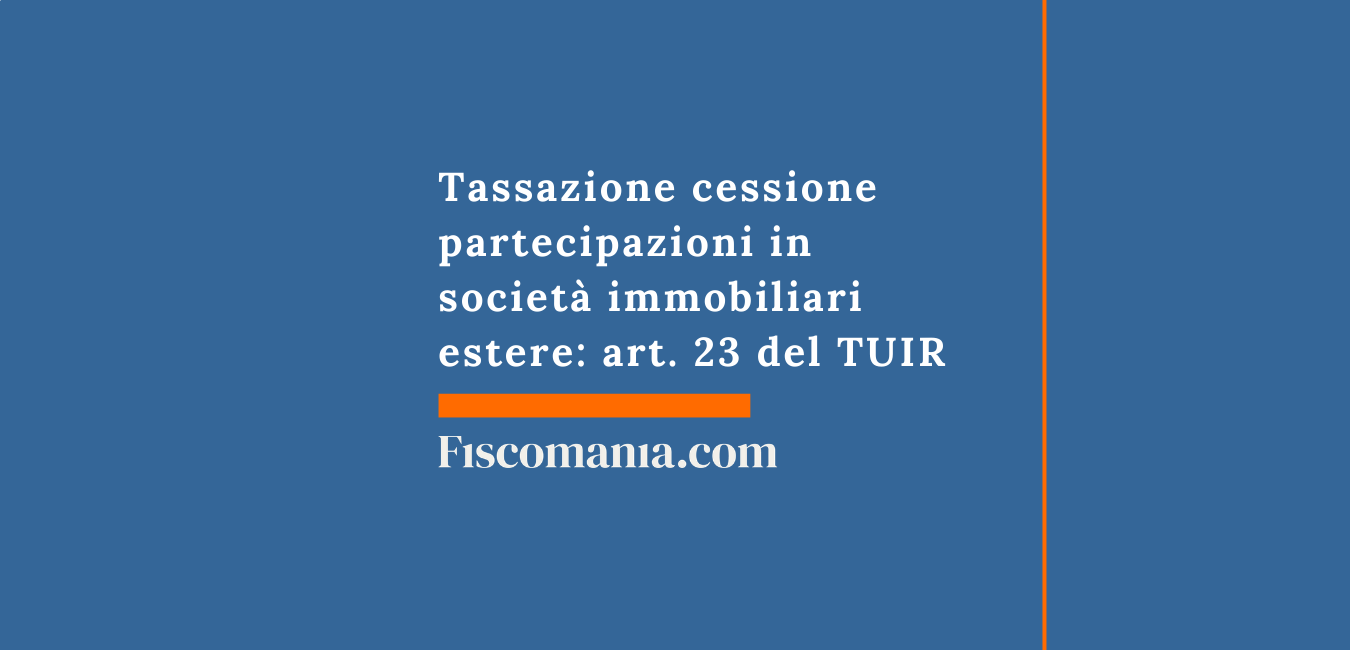 La tassazione delle plusvalenze che derivano dalla cessione di partecipazioni in società immobiliari estere che detengono più del 50% di beni immobili situati nel territorio italiano, è in Italia (art. 23, co 1-bis del TUIR).