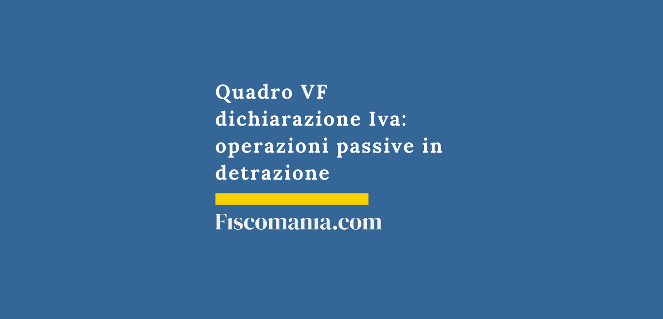 Il Quadro VF della dichiarazione IVA è la sezione destinata all’indicazione delle operazioni passive e alla determinazione dell’IVA ammessa in detrazione. Deve essere compilato da tutti i soggetti passivi IVA che esercitano attività d’impresa, arte o professione, riportando imponibile e imposta relativi agli acquisti e alle importazioni effettuati nel periodo d’imposta (artt. 19 e 25, D.P.R. n. 633/1972).